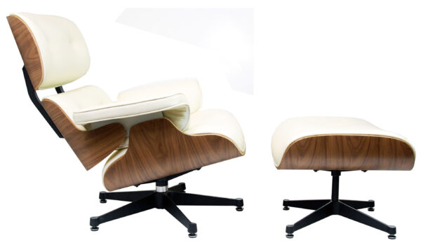 The famous Eames Lounge Chair has become an icon of design. It was the first chair designed for the high-end market; all of Eames’ previous models were focused on function and minimal cost. Conceived years after the famous Plywood and fibreglass armchairs, the Lounge Chair was a gift for the Eames’ close friend and director Billy Wilder. At Charles Eames, we source high-quality reproductions of the Lounge Chair, in a variety of leather colours and shades of wood. This version comes with a powder coated five star aluminium base.