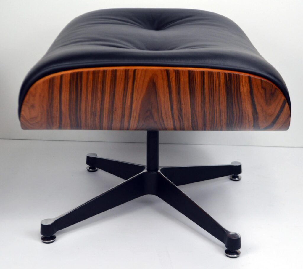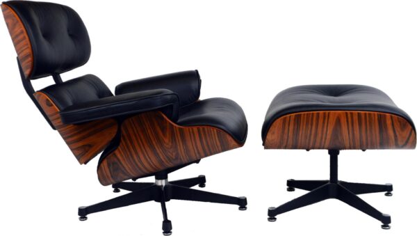 The famous Eames Lounge Chair has become an icon of design. It was the first chair designed for the high-end market; all of Eames’ previous models were focused on function and minimal cost. Conceived years after the famous Plywood and fibreglass armchairs, the Lounge Chair was a gift for the Eames’ close friend and director Billy Wilder. At Charles Eames, we source high-quality reproductions of the Lounge Chair, in a variety of leather colours and shades of wood. This version comes with a powder coated five star aluminium base.